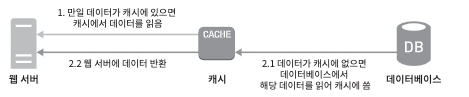 - 만약 저장되어 있지 않은 경우 DB 질의를 통해 데이터를 찾아 캐시에 저장한 후 클라이언트에게 반환함
