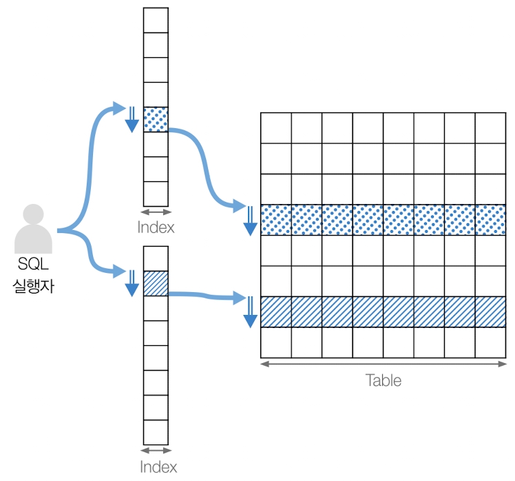 - 개념 - 인덱스를 이용하여 데이터를 일정 부분 읽어서 ROWID로 테이블 레코드를 찾아가는 방법 - ROWID: 테이블 레코드가 디스크 상에서 어디에 저장되었는지 가리키는 위치 정보