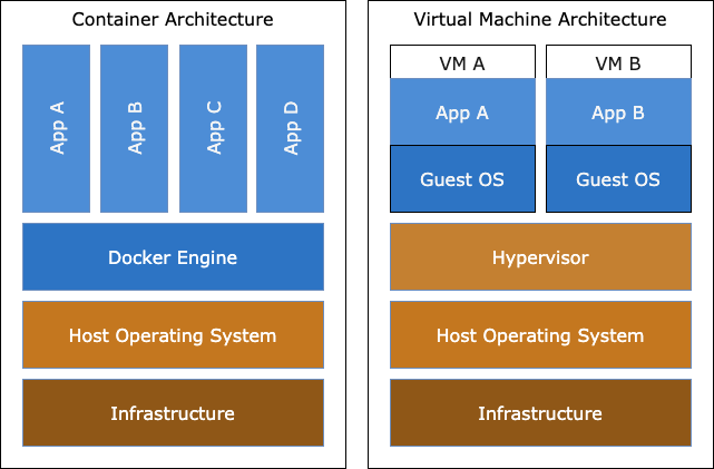 각 가상머신은 전체 운영체제와 필요한 라이브러리 및 응용 프로그램이 포함된 자체적인 가상 환경을 갖는다