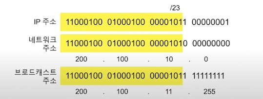 - 브로드캐스트 주소: - 200.100.11.255/23