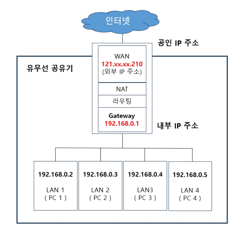 - 인터넷에 접속할 때만 공인 IP 주소 사용하여 IP 주소를 절약할 수 있다.