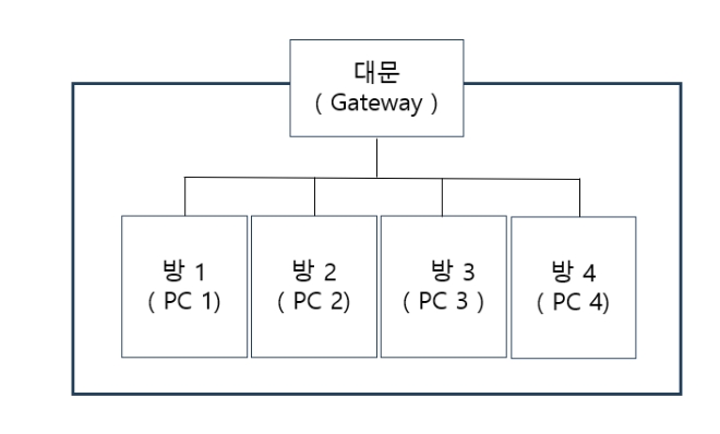 네트워크를 주택에 비유하면 각 방은 호스트에 해당되고, 대문은 게이트웨이에 해당된다.