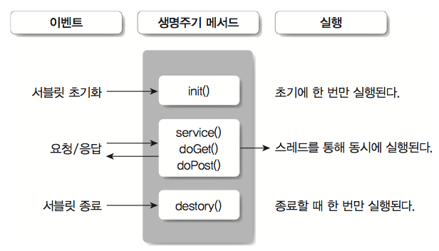 디폴트 생성자를 이용하여 서블릿 객체를 생성하고 init()메소드를 사용하여 서블릿 객체를 초기화 할때 사용함